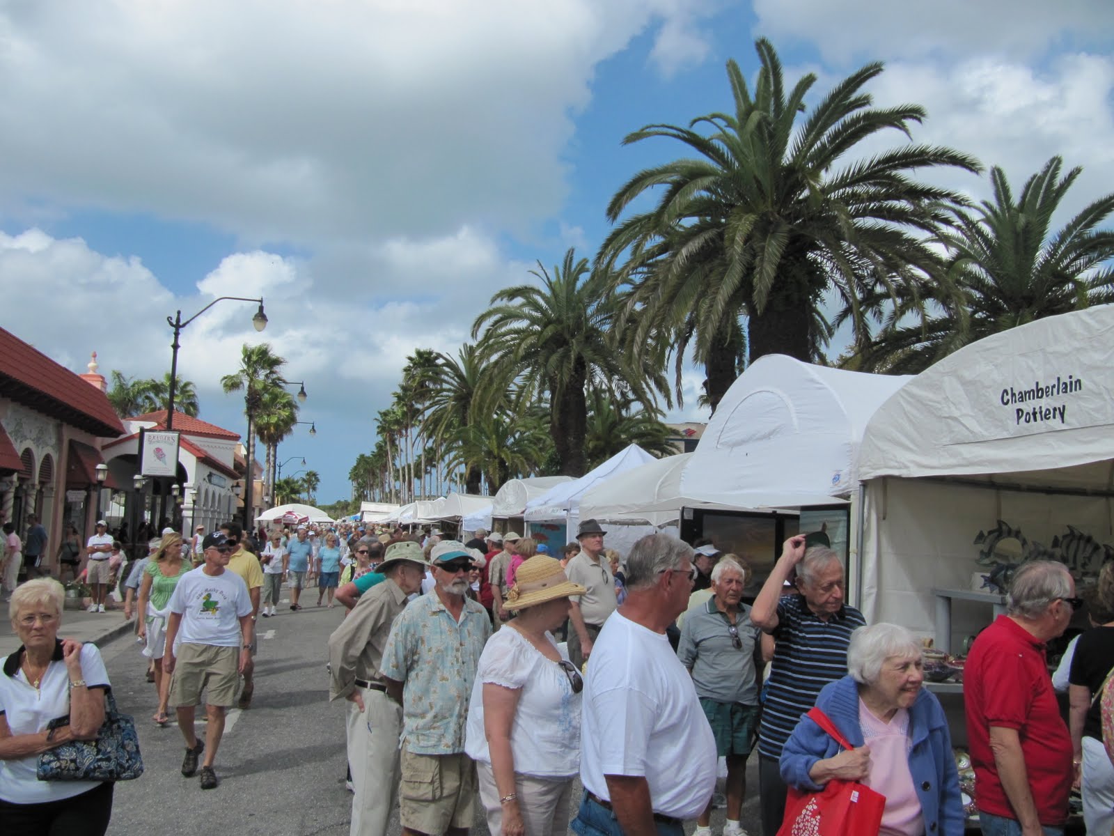 Showed them the Royal Coachman RV park where we stayed prior and why it is such an unbelievable campground - Location, Location, Location (Actually it is a very nice park too!) Then we drove into the square in Venice and a wonderful art and craft show was underway! We enjoyed walking along the main street seeing all the vendors. Of course, we had to stop at the Upper Crust for another blueberry scone!